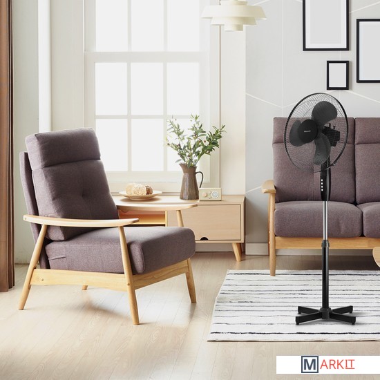 Быстро освежить воздух в помещении даже в самый жаркий день способен напольный вентилятор MAXWELL MW-3540 с мощностью 35 Вт. Его эффективность обеспечивают большие лопасти диаметром 40 см, которые могут работать в трех скоростных режимах. Направление воздушного потока можно регулировать самостоятельно с помощью очень простого механического управления, выбирая высоту прибора, угол наклона и поворот корпуса (до 90°).