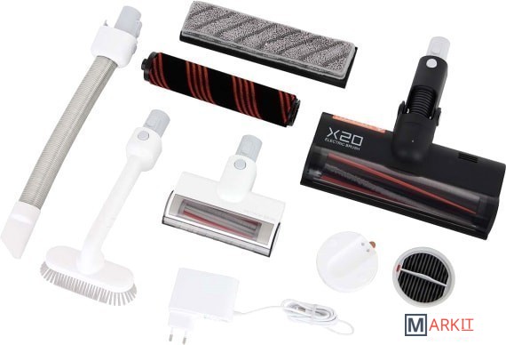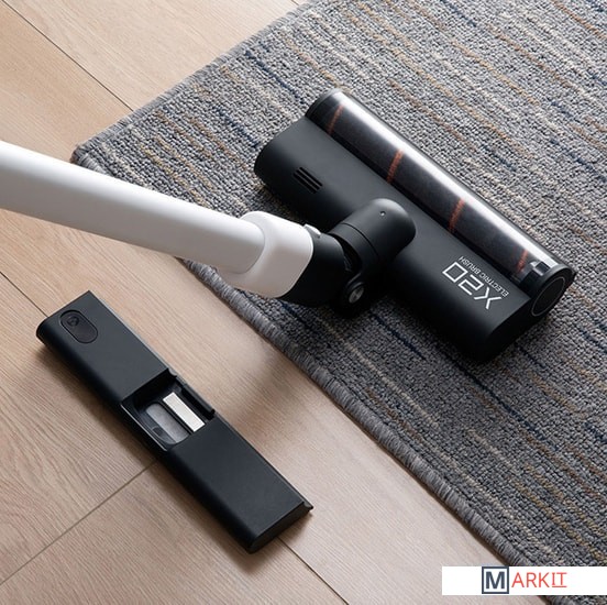 Сочетание сухой и влажной уборки, бесколлекторный двигатель со скоростью вращения 120 000 об./мин, беспроводное магнитное зарядное устройство.