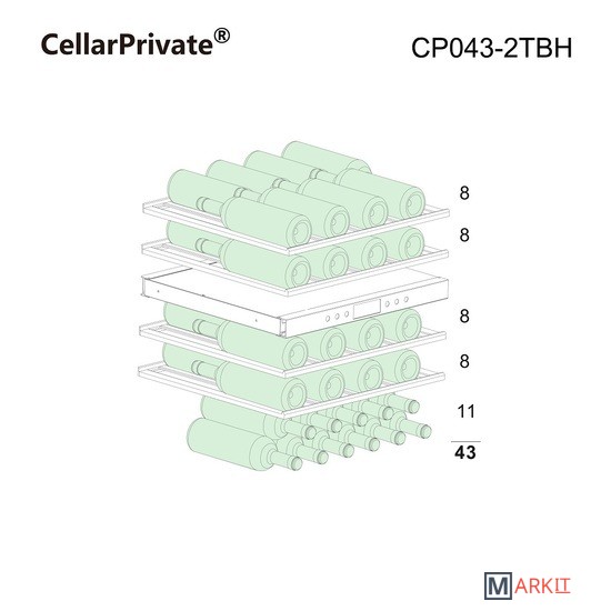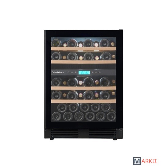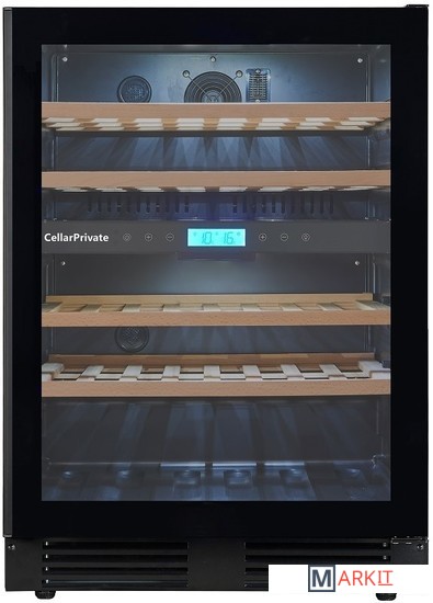 CellarPrivate CP043-2TBH это двухзонный холодильник для вина, вместимостью до 43 бутылок. Температура выставляется в каждой камере раздельно, что позволяет хранить одновременно красные и белые вина.Температура в верхней зоне настраивается от 5-12°С / в нижней 12-20°С.Сенсорные кнопки управления температурой и подсветкой расположены на панели за стеклянной дверцей.Данная модель винного шкафа оснащена компрессорной системой охлаждения, за счёт чего его можно использовать в достаточно тёплом помещении, при этом, он будет стабильно держать заданную температуру.CP042-2TBH можно встраивать под столешницу либо в любую нишу, также можно использовать и как отдельностоящий винный шкаф. Высота регулируется при помощи ножек до +7см.Постоянное проветривание бутылок обеспечивается бесшумными вентиляторами, установленными внутри камер это предотвращает появление посторонних запахов и образование плесени. CellarPrivate CP043-2TBH оснащён четырьмя деревянными съёмными полками, на которых с легкостью разместятся любые бутылки.