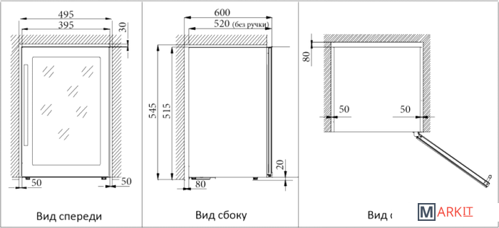 | Исполнение | отдельностоящий / свободностоящее (Винный холодильник предназначен для отдельностоящей установки и не предназначен для встраивания. Встраивать данную модель в мебельную нишу можно только с соблюдением значительных зазоров.) |