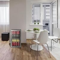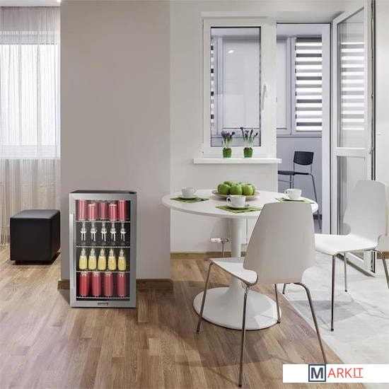Четыре съемные хромированные металлические полки.Стеклянные двери с двойной изоляцией и элегантной передней панелью из матовой нержавеющей стали обеспечивают хороший обзор салона с охлажденными напитками.Оптимальное освещение благодаря переключаемому внутреннему освещению. Сенсорная панель с цифровым дисплеем позволяет регулировать температуру охлаждения от 0 до 10 ° C.Регулируемые по высоте ножки для компенсации неровностей почвы.Объем - 124 л.Дверь с односторонним открыванием (возможность изменения направления / после изменения направления открывания двери логотип на двери должен находиться в противоположном положении).