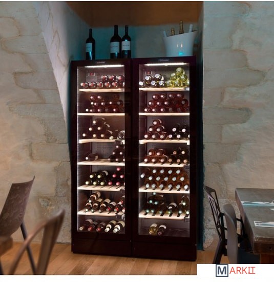Тип охлаждения - смешанный.5 фиксированных полок из массива дерева + 1 витрина в комплекте;1 термометр / датчик влажности + 3 термометра для оптимальной точности в любое время;1 угольный фильтр для нейтрализации запахов и очистки воздуха;Отличное распределение холодного воздуха ;2 датчика, подключенных к термостату безопасности с электронной регулировкой;1 визуальная и звуковая сигнализация температуры, обеспечивающая быстрое предупреждение в случае колебаний;Опция безопасности Big Chill предотвращает замерзание бутылок при температуре наружного воздуха от 5 ° C до 0 ° C.Дверь с защитой от ультрафиолета.В зависимости от ваших настроек винный погреб может предложить вам до 6 различных температурных зон! Незаменим, если в вашей винной коллекции есть красное, белое и розовое вино и даже шампанское.Это означает, что если вы установите минимальную температуру внизу погреба и максимальную вверху, разница между ними автоматически разделится, чтобы предоставить вам 6 различных температурных зон в одном погребе. Если вы предпочитаете единую равномерную температуру в винном погребе, просто выберите одинаковую температуру для верхней и нижней части прибора.Синие светодиоды.