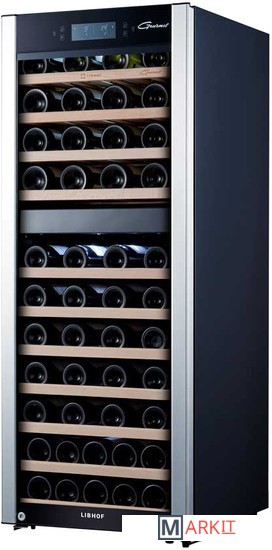 Двухзонный шкаф премиум класса GPD-73 может использоваться для охлаждения вина перед подачей, длительного хранения или созревания винной коллекции. Модель рассчитана на размещение в ней до 73 бутылок вина стандартного объема 0, 75 л. Современный компрессор обеспечивает низкий уровень вибраций. На полках из твердых пород дерева не образуется конденсат, что позволяет сохранить этикетки бутылок в первоначальном виде. Современное светодиодное освещение не является источником тепла и сохраняет электроэнергию. На двери установлен тонированный стеклопакет, препятствующий проникновению света и сохраняющий свойства благородного алкоголя. Сменный угольный фильтр служит для устранения посторонних запахов, проникающих внутрь холодильника через систему естественной вентиляции. Для предотвращения высыхания пробки в шкафу сохраняется влажность более 50%. Это позволяет бутылкам с вином храниться в течение долгих лет. Благодаря «зимнему» режиму прибор можно устанавливать даже в помещениях с низкой температурой. В таких случаях у винного шкафа включается режим подогрева камеры. Управление параметрами работы модели производится при помощи сенсорных кнопок и ЖК-дисплея с цифровой индикацией температуры.