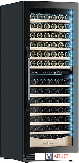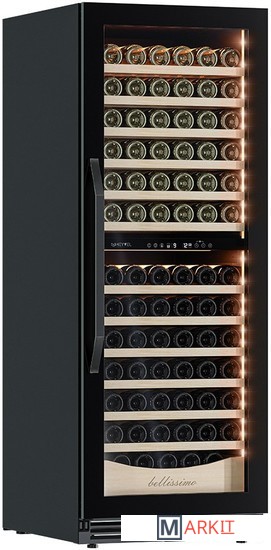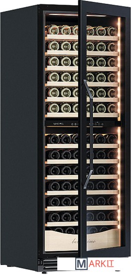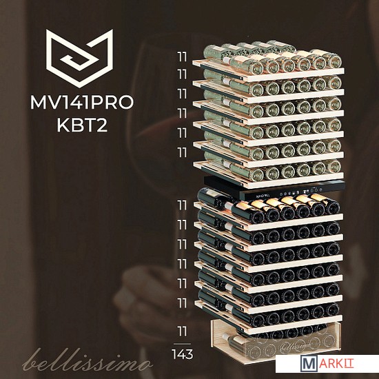 Винный шкаф предназначен для профессионального и длительного хранения различных сортов вин (до 141 бутылок типа Бордо). Он так же оснащен дверью с защитой от ультрафиолетовых лучей и поддерживает влажность в диапазоне 60-80%, как в настоящем винном погребе.Стильный шкаф MV141PRO-KBT2 сочетает в себе неподвластное времени очарование, а так же качество натуральных материалов и высоких технологий.MV141PRO-KBT2 может устанавливаться как отдельно, так и встраиваться в нишу. За счёт того, что верхняя петля двери не выступает за пределы корпуса и шкаф оснащён встроенной системой вентиляции - эта модель устанавливается в нишу с минимальными зазорами.Внутреннее пространство винного шкафа разделено на две температурные зоны. Вы сможете настроить их так, что бы хранить все виды вина при идеальной температуре или установить разные значения, что бы напитки всегда были готовы к подаче. Так же в каждой зоне есть полка с увеличенным пространством. На таких полках Вы сможете разместить не только стандартные бутылки Бордо, но и Магнум. А если нужно разместить что-то побольше - то в этом случае можно вынуть одну или несколько полок. Внизу есть выдвижной ящик - в нем Вы можете хранить вино в бутылках или винные атрибуты (штопор, бокалы, аэраторы, декантеры, каплеуловители, термометры и т.д.).Идеальной температурой хранения вина считается температура +12°C. Подаются розовые и сухие белые вина обычно при температуре от +8°C до +14°C, игристые вина и шампанское при +6°C до +8°C, а легкие красные вина - при +13°C и насыщенные красные вина при +15°C - +19°C.
