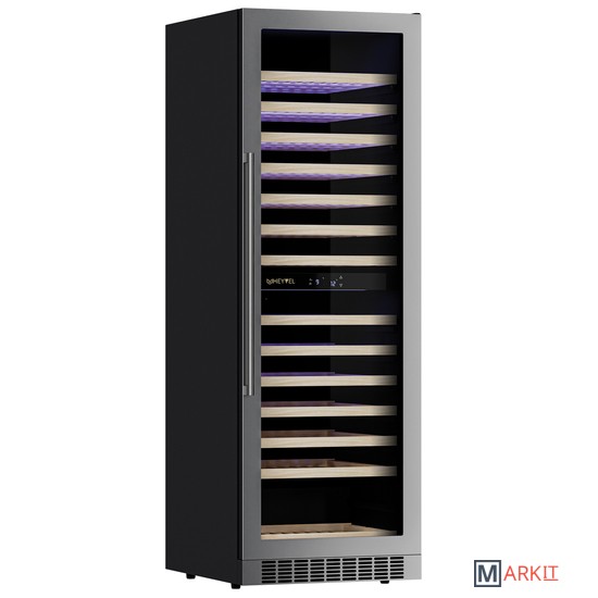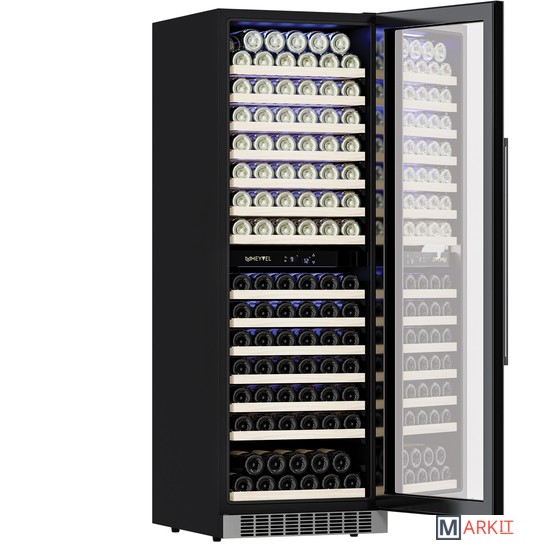 Модель MV163-KST2 имеет привлекательный внешний вид, сочетающий в себе неподвластное времени очарование натуральных материалов с высокотехнологичными системами сохранения продуктов. Винный холодильник Meyvel MV163-KST2 оснащен дверью с защитой от ультрафиолетовых лучей и отлично подойдет для хранения и созревания различных сортов вин. Динамическая система охлаждения обеспечивает оптимальную температуру для вина и сохраняет необходимую влажность внутри камеры, а наличие двух температурных зон позволяет хранить в шкафу напитки любого типа.Компрессорный винный шкаф Meyvel MV163-KST2 обладает большой вместимостью и способен разместить до 163 бутылок. Располагаются они на полках из массива бука. Внутреннее пространство шкафа разделено на 2 температурные зоны с возможностью настраивать каждую из них. Общий температурный диапазон этого шкафа от +5°C до +18°C. Холодильник поддерживает влажность в диапазоне 60-80%, как в настоящем винном погребе.Быстро задавайте необходимую температуру для содержимого и управляйте всеми функциями холодильника с помощью интуитивно-понятного расположения клавиш на электронном дисплее.