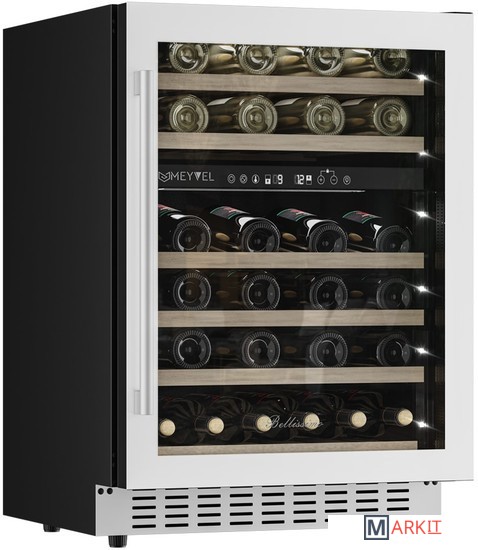Винный шкаф Meyvel MV46PRO-KWT2Модель MV46PRO-KWT2 имеет привлекательный внешний вид, сочетающий в себе неподвластное времени очарование натуральных материалов с высокотехнологичными системами сохранения продуктов. Винный холодильник Meyvel MV46PRO-KWT2 оснащен дверью с защитой от ультрафиолетовых лучей и отлично подойдет для хранения и созревания различных сортов вин. Динамическая система охлаждения обеспечивает оптимальную температуру для вина и сохраняет необходимую влажность внутри камеры.Универсальный микроклиматКомпрессорный винный шкаф Meyvel MV46PRO-KWT2 обладает большой вместимостью и даёт возможность разместить до 46 бутылок стандартного типа Бордо (0,75 л). Располагаются они на выкатных полках из дерева. Внутреннее пространство шкафа разделено на 2 температурные зоны, с возможностью настраивать каждую из них. Диапазон верхней зоны варьируется от +5°C до +12°C, а нижней - от +12°C до +20°C.Сенсорный дисплейБыстро задавайте необходимую температуру для содержимого и управляйте всеми функциями холодильника с помощью интуитивно-понятного расположения клавиш на сенсорном дисплее.Комфортное расположениеMeyvel MV46PRO-KWT2 отлично подходит для расположения на любой кухне. Шкаф можно встроить под столешницу и отрегулировать ножки по высоте, а так же, перенавесить дверь для более удобного использования (петли входят в комплект).Фильтрация поступающего воздухаВ винный шкаф встроен угольный фильтр, который будет очищать поступающий воздух от посторонних запахов, которые губительно влияют на вкусовые качества вина.Рекомендуем проводить замену фильтра 1 раз в год.