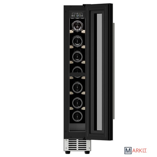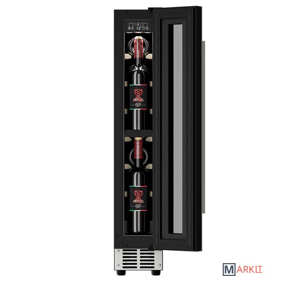 Винный шкаф Meyvel MV9-KST1Модель MV9-KST1 имеет привлекательный внешний вид, сочетающий в себе неподвластное времени очарование натуральных материалов с высокотехнологичными системами сохранения продуктов. Винный холодильник Meyvel MV9-KST1 оснащен дверью с защитой от ультрафиолетовых лучей и отлично подойдет для хранения и созревания различных сортов вин. Динамическая система охлаждения обеспечивает оптимальную температуру для вина и сохраняет необходимую влажность внутри камеры.Универсальный микроклиматКомпрессорный винный шкаф Meyvel MV9-KST1 несмотря на небольшой размер, обладает большой вместимостью и дает возможность разместить до 9 бутылок. Располагаются они на держателях из массива бука. Внутреннее пространство шкафа поддерживает комфортную для вина температуру от +5℃ до +20℃ и имеет самую большую вместимость среди аналогичных винных шкафов. Преимуществом этой модели является возможность разместить внутри одну высокую бутылку. Так же, MV9-KST1 данная модель поддерживает влажность в диапазоне 60-80%, как в настоящем винном погребе.Сенсорный дисплейБыстро задавайте необходимую температуру для содержимого и управляйте всеми функциями холодильника с помощью интуитивно-понятного расположения клавиш на сенсорном дисплее.