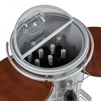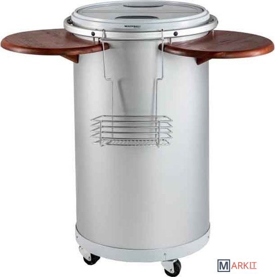 Мобильный холодильник CC45 для вина и напитков вмещает до 16 бутылок вина, 44 банки 0,3 л или 32 бутылки 0,5 л. Минимальная температура окружающей среды - 16˚.Двусторонние откидные прозрачные крышки.Регулируемый термостат.Держатель для винных бутылок.Две внешние деревянные столешницы.Вращающиеся колеса.Диаметр - 45,4 смВысота - 82,5 см