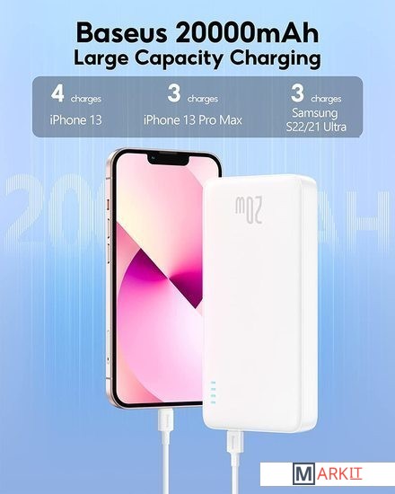 Markit » Портативные зарядные устройства » Внешний аккумулятор Baseus 20000mAh PPAP20K (белый)