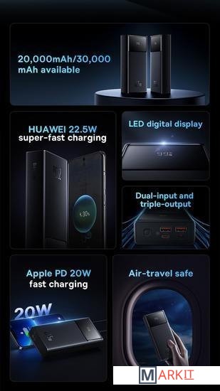 Markit » Портативные зарядные устройства » Внешний аккумулятор Baseus Star-Lord Digital Display Fast Charge Power Bank 30000mAh (черный)