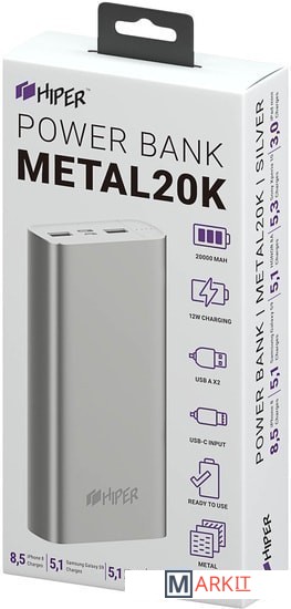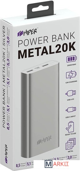 Markit » Портативные зарядные устройства » Внешний аккумулятор Hiper Metal20K (серебристый)