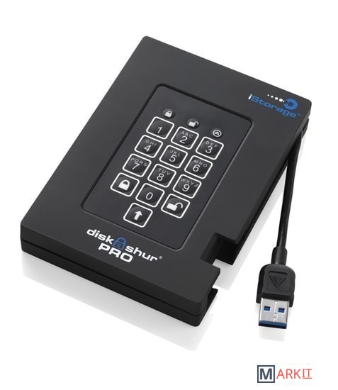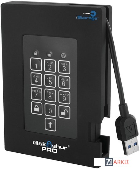 iStorage diskAshur Pro портативный жёсткий диск с безопасностью военного уровня и аппаратным шифрованием XTS-AES 256 бит в режиме реального времени.