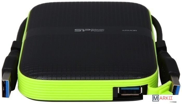 Защищенный внешний жесткий диск, который прошел испытания на соответствие американскому военному стандарту устойчивости к ударам MIL-STD-810G 516.6 Procedure IV. Обладает степенью устойчивости к влаге IPX4, дающей защиту в случае попадания брызг жидкости на поверхность устройства.