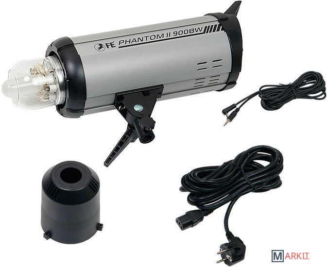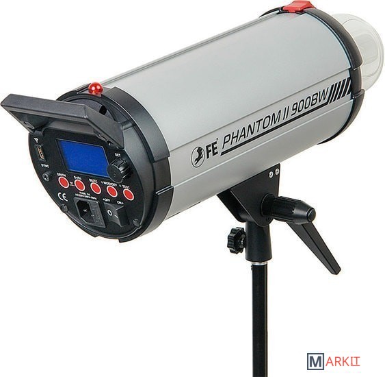 Новая, модернизированная версия моноблоков серии Phantom. Самое главное отличие от старой версии — Phantom II имеет встроенную беспроводную систему синхронизации! Новый дизайн панели управления Phantom II заключается в том, что панель управления моноблоком сделана под небольшим наклоном в сторону фотографа. Теперь вам легче видеть, в том числе, значения на ЖК дисплее, когда вспышка установлена на стойке и находится выше линии уровня глаз. В том числе стало проще устанавливать нужные параметры импульса и видеть установленные на дисплее значения.Панель управления вспышкойНа панели находятся кнопки управления режимами работы моноблока, ЖК экран с яркой и контрастной подсветкой, выключатель, колёсико выбора («крутилка»), USB порт для подключения приёмника, гнездо для 3.5 мм джека кабеля проводной синхронизации, гнездо для подключения питания и гнездо для предохранителя 10А. На верхней части корпуса находится датчик светосинхронизации.Алюминиевый корпус обеспечивает хорошую прочность моноблока. Стальной кронштейн надежно фиксирует моноблок на стойке. В кронштейне предусмотрено отверстие для установки зонта. Система охлаждения вентилятором не даст устройству перегреться при продолжительной работе.Особенности Falcon Eyes Phantom II 900 BWВстроенная система беспроводной синхронизации 2.4 ГГцУправлять моноблоком можно с помощью пульта Falcon Eyes SprintTrigger II 2.4G 32C(N) пульт приобретаются отдельно. В беспроводном режиме доступны следующие настройки: включение/отключение пилотного света, регулировка мощности вспышки, включение/отключение звуковых сигналов.Беспроводное управление 433 МГцУправление возможно комплектом из приёмника и передатчика для дистанционного управления Falcon Eyes SprintTrigger 16 (приобретаются отдельно). Для этого вспышка оснащена портом USB для подключения приёмника. В беспроводном режиме доступны следующие настройки: включение/отключение пилотного света, регулировка мощности вспышки, включение/отключение звуковых сигналов.Точная регулировка мощности импульса от 1/32 до 1/1 с шагом 0.1Комплектная лампа пилотного света 250 Вт с регулировкой яркости от 5% до 100%Стабильность мощности импульса — отклонение составляет не более 2%Возможность светосинхронизации с пропуском предварительного импульсаКорпус из алюминия. Байонет Bowens позволит установить широкий ряд светоформирующих насадок: софтбоксы, рефлекторы, конусы шторки и т. д.Функция памяти пользовательских настроек моноблока