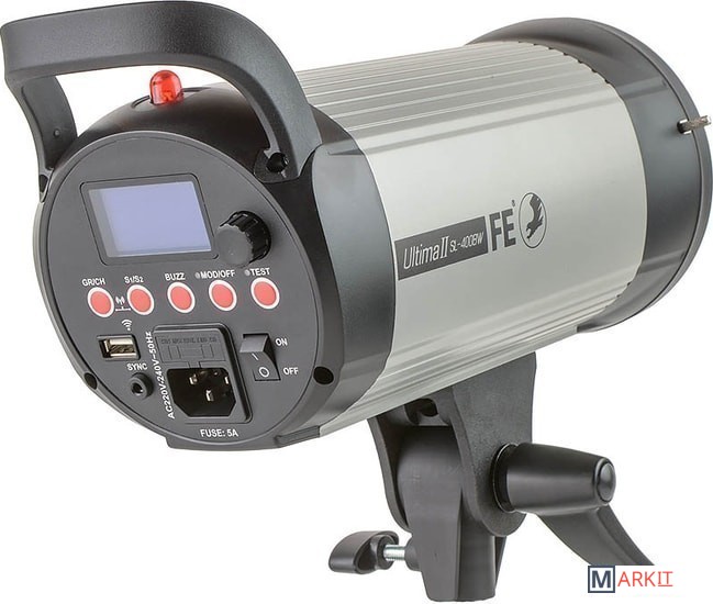 Новая, модернизированная версия моноблоков серии Ultima. Самое главное отличие от старой версии - Ultima II имеет встроенную беспроводную систему синхронизации! Новый дизайн панели управления Ultima II заключается в том, что панель управления моноблоком сделана под небольшим наклоном в сторону фотографа. Теперь вам легче видеть, в том числе, значения на ЖК дисплее, когда вспышка установлена на стойке и находится выше линии уровня глаз. В том числе, стало проще устанавливать нужные параметры импульса и видеть установленные на дисплее значения.Вспышка Falcon Eyes Ultima II SL-400 BW компактная, лёгкая и надёжная. Купить вспышку можно для фотосъёмки свадеб, «предметки», портретов и многих других видов и жанров.Панель управления вспышкойНа панели находятся кнопки управления режимами работы моноблока, ЖК экран с яркой и контрасной подсветкой, выключатель, колёсико выбора («крутилка»), USB порт для подключения приёмника, гнездо для 3.5 мм джека кабеля проводной синхронизации, гнездо для подключения питания и гнездо для предохранителя 5А. На верхней части корпуса находится датчик светосинхронизации.Алюминиевый корпус обеспечивает хорошую прочность моноблока. Стальной кронштейн надежно фиксирует моноблок на стойке. В кронштейне предусмотрено отверстие с поджимным винтом для установки зонта. Система охлаждения вентилятором не даст устройству перегреться при продолжительной работе.Особенности Falcon Eyes Ultima II SL-400 BWВстроенная система беспроводной синхронизации 2.4 ГГцУправлять моноблоком можно с помощью пульта Falcon Eyes SprintTrigger II 2.4G 32C(N) пульт приобретаются отдельно. В беспроводном режиме доступны следующие настройки: включение/отключение пилотного света, регулировка мощности вспышки, включение/отключение звуковых сигналов.Беспроводное управление 433 МГцУправление возможно комплектом из приёмника и передатчика для дистанционного управления Falcon Eyes SprintTrigger 16 (приобретаются отдельно). Для этого вспышка оснащена портом USB для подключения приёмника. В беспроводном режиме доступны следующие настройки: включение/отключение пилотного света, регулировка мощности вспышки, включение/отключение звуковых сигналов.Точная регулировка мощности импульса от 1/16 до 1/1 с шагом 0.1Комплектная лампа пилотного света 150 Вт с регулировкой яркости от 5% до 100%Стабильность мощности импульса - отклонение составляет не более 2%Возможность светосинхронизации с пропуском предварительного импульсаКомпактный и лёгкий корпус из алюминия. Байонет Bowens позволит установить широкий ряд светоформирующих насадок: софтбоксы, рефлекторы, конусы шторки и т. д.Функция памяти настроек моноблока