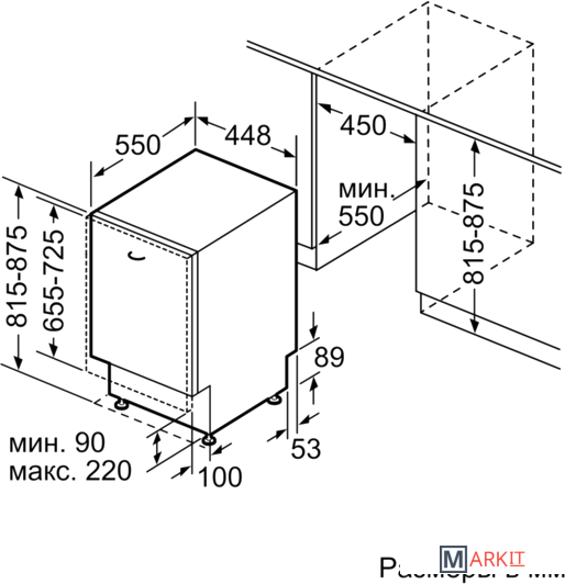 | Размеры ниши для встраивания |
