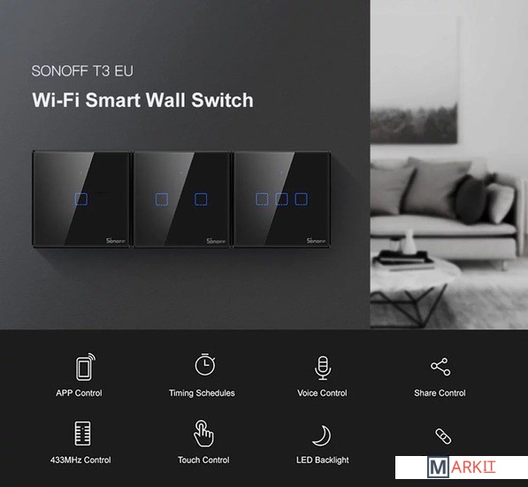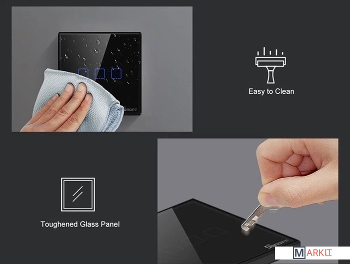 Умный WiFi + RF 2-канальный выключатель. Удаленное управление через телефон. Поддерживается различными голосовыми помощниками, в том числе «Алисой». Лицевая панель – закаленное стекло. Внимание: TX Series T0 работает от механического воздействия (нажатия) и по Wi-Fi (или локальной сети), но не поддерживает радиосвязь (нет возможности принимать RF сигналы). Если Вам необходимо дополнительное радиоуправление по RF, тогда Вам нужно обратить внимание на TX Series T1/T2/T3.Отличия выключателей TX Series: T0/T1/T2 – белого цвета, T3 – черного цвета. Модель T0 поддерживает только Wi-Fi, модели T1/T2/T3 поддерживают Wi-Fi и RF сигналы. В моделях T0 и T1 стекло над рамкой, в моделях T2 и T3 стекло внутри рамки. Модели T0 и T1 отличаются только отсутствием или наличием RF приемника. Модели T1 и T2 отличаются только рамкой. Модели T2 и T3 отличаются только цветом.