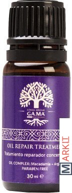 В комплекте идет восстанавливающее средство для волос (30 мл) с активным комплексом масел арганы и макадамии