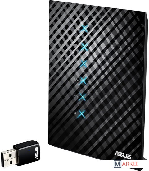 Комплект оборудования стандарта 802.11ac: двухдиапазонный Wi-Fi маршрутизатор + USB-адаптер.ASUS RT-AC52U – это беспроводной маршрутизатор стандарта 802.11ac, обеспечивающий скорость передачи данных на уровне 300 и 433 Мбит/с в диапазонах 2,4 и 5 ГГц, соответственно. Входящий в комплект поставки USB-адаптер работаетв диапазоне 5 ГГц на скорости до 433 Мбит/с. С его помощью ноутбук или настольный ПК подключается к беспроводной сети на полной скорости.RT-AC52U наделен большим объемом системной памяти (128 мегабайт), что обеспечивает стабильную работу при высокой нагрузке, а антенны расширяют радиус действия его беспроводного модуля на 150%. Благодаря разъему USB к маршрутизатору RT-AC52U можно подключить 3G/4G-модемы, принтеры и внешние накопители, чтобы расширить функциональность устройства. Этот же разъем позволяет подзаряжать мобильные гаджеты, не заботясь о дополнительном блоке питания.Для управления всеми функциями маршрутизатора служит удобный и интуитивно понятный интерфейс ASUSWRT. В число его возможностей входит мониторинг интернет-трафика и ограничение пропускной способности интернет-канала для отдельных приложений.
