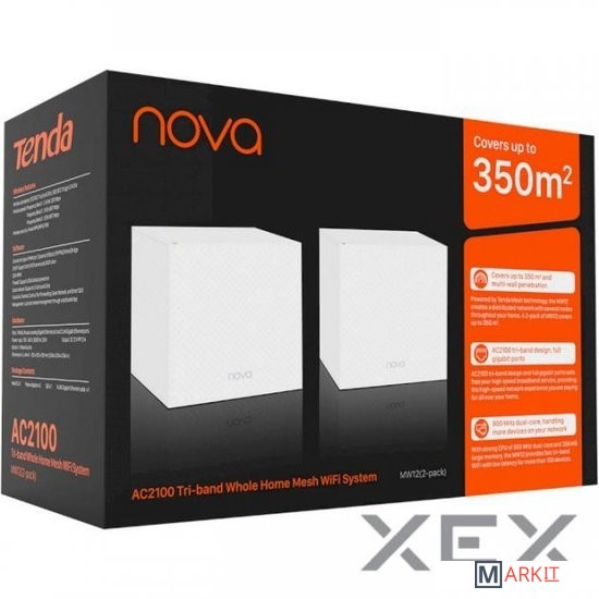 Tenda MW12 -трехдиапазонная гигабитная Wi-Fi Mesh система АС2100, рекомендуемая для помещений с высокоскоростным широкополосным доступом и сетей, где критична повышенная производительность и надежность сети. Основанная на технологии Tenda Mesh, Mesh система создает распределенную сеть с несколькими узлами по всему дому. Комплект из трех блоков MW12 обеспечивает зону покрытия высокоскоростным бесшовным роумингом площадь до 500 м2. Обладая тремя диапазонами частот (2.4 ГГц, 5 ГГц -1, 5 ГГц -2) и полными гигабитными портами, MW12 позволяет в полной мере и максимально эффективно использовать потенциал высокоскоростного широкополосного доступа. MW12 достигает суммарной скорости передачи данных по Wi-Fi - до 2100 Мбит/с: 2.4 ГГц: 300 Мбит/с, 5 ГГц -1: 867 Мбит/с, 5 ГГц -2: 867 Мбит/с. Служебная транспортная сеть (backhaul) на частоте 5 ГГц-2 существенно повышает производительность и скоростные характеристики системы по сравнению с двухдиапазонным системами. Система оснащена мощным процессором с частотой 900 МГц и объемом памяти- 256 МБ, что помогает обрабатывать ощутимо большее количество устройств локальной сети. Все устройства сети могут одновременно пользоваться высокоскоростным трехдиапазонным Wi-Fi с минимальной задержкой, что критично для потоковой передачи данных 4К, видеоконференций, online Интернет-игр и приложений VR HD. Как и все системы линейки Nova, MW12 отличается простой установкой -блоки преднастроены для работы в единой сети заранее, и предполагает как автоматическое подключение к сети, так и добавление блоков вручную.