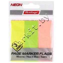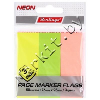 Markit » Канцтовары » Бумажная продукция » Бумага для заметок, боксы для бумаги » Закладки-разделители бумажные с липким краем Berlingo, 76 x 25 мм, 50 л. x 3 цвета, неон