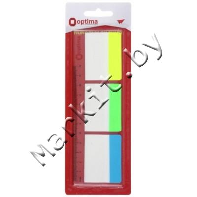 Markit » Канцтовары » Бумажная продукция » Бумага для заметок, боксы для бумаги » Закладки-разделители пластиковые с липким краем Optima, 38 x 50 мм, 10 л. x 3 цвета, неон + линейка 12 см
