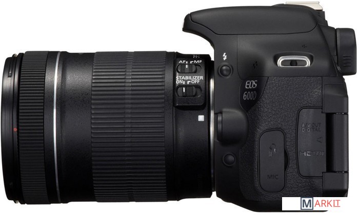 Любительская зеркальная камера. Аппарат подойдет как фотографам-любителям так и профессионалам, поскольку камера переняла много положительных характеристик от старшей модели EOS 60D. Камера имеет эргономичный корпус из пластика на металлическом шасси. Основные особенности модели: 18 Мп. CMOS–сенсор, диапазон чувствительности ISO 100-12800, 3” поворотный дисплей с разрешением 1 040 000 пикселей, контрастный автофокус в режиме Live View, 9-точечная система автофокусировки, серийная съемка 3.7 кадра в секунду, Full HD видеосъемка 1920x1080. Комплект с объективом Canon EF-S 18-135mm f/3.5-5.6 IS.