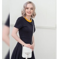 Эта маленькая кожаная женская сумка с ремнем через плечо подходит для поездок, похода в гости или на вечеринку.Внутри три отделения. Два из них плоские. В них можно положить, например, паспорт и карманные деньги. Среднее отделение побольше. В него помещаются телефон, косметика, влажные салфетки, очки. Женская сумочка выглядит компактной, стильной и элегантной. При этом в нее помещается все самое-самое необходимое.Сумка сделана из экокожи на плотной тканой основе — отлично держит форму, без заломов и других деформаций. Кожа искусственная, но выглядит хорошо даже с изнанки, поэтому от подклада из ткани мы отказались. Все швы аккуратно прошиты, края идеально ровные, и нитки нигде не торчат. Такую сумочку приятно носить с собой и не стыдно покрасоваться перед подругами.Эту женскую сумку носят через плечо. Ремень достаточно длинный — внутри фиксируется на узел. Для максимального удобства подрегулируйте его под себя и носите сумочку с удовольствием.